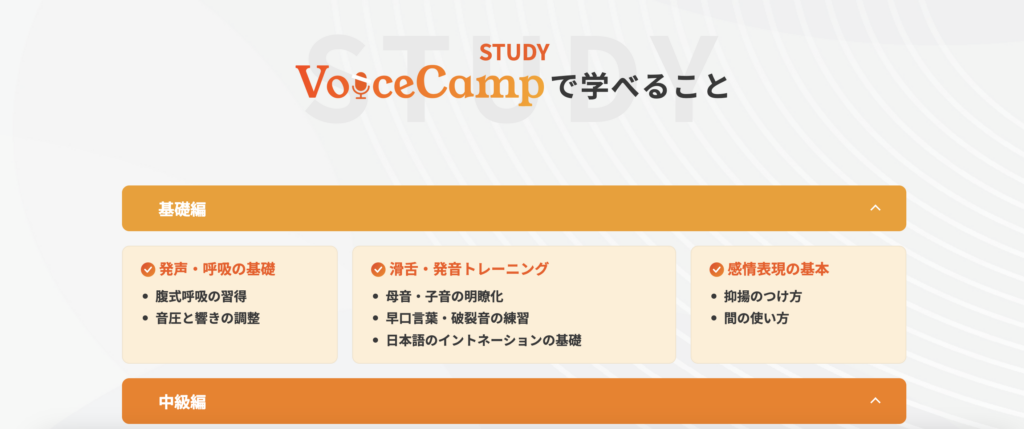 声の仕事を目指すうえで大切なのは、基礎をおろそかにせず、実務を意識して学ぶことです。Voice Campの声優養成コースは、発声から演技、実践までを一貫して学べる設計になっています。