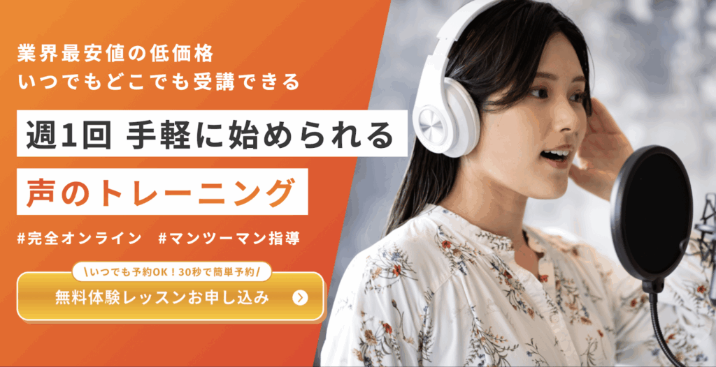都度払いであれば1レッスン6,500円(税込)から利用できて、無料レッスンが受けられる点もおすすめの理由になります。「Voice Camp」を受講して、自宅から演技に関するスキルを身につけてみましょう。