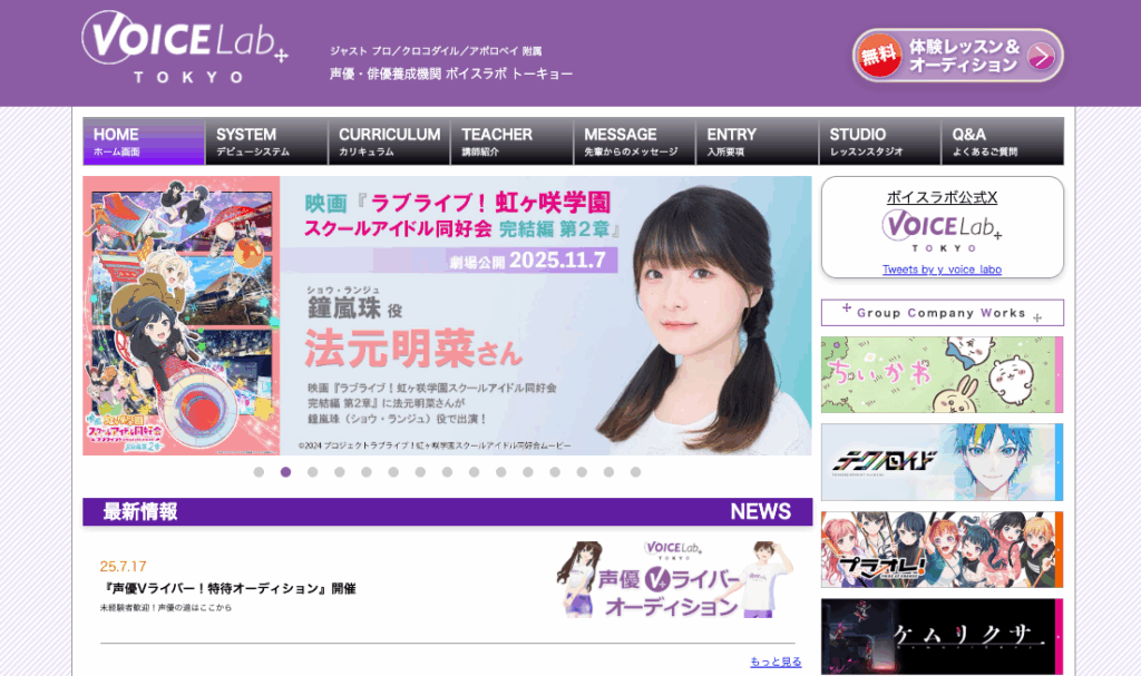 「ボイスラボ トーキョー」は、学習経験に合わせて2種類のクラスが用意されているスクールです。どちらも実技審査を受験してからの入学になるため、短期間で早期デビューを目指したい方におすすめです。