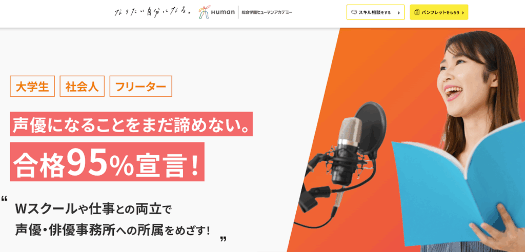 「ヒューマンアカデミー」は、ダブルスクールや仕事と両立しながら俳優を目指せるスクールです。受講者は全年齢が対象となっているので、何歳からでも夢にチャレンジできます。