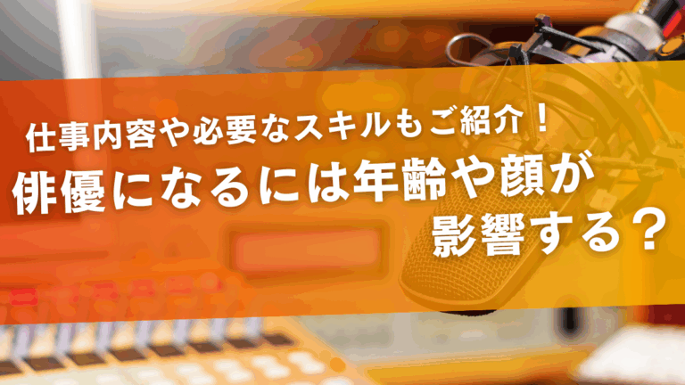 これから俳優を目指す方の中には、「どんなスキルが必要なの?」「年齢や見た目は影響する?」と疑問を抱く人も多いでしょう。