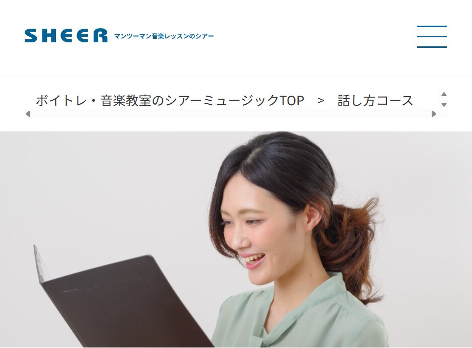 「シアーミュージック」は全国に教室を展開する大手音楽スクールで、話し方コースも提供しています。レッスンはすべてマンツーマン形式で行われ、受講者の目的に合わせた指導を受けることができます。