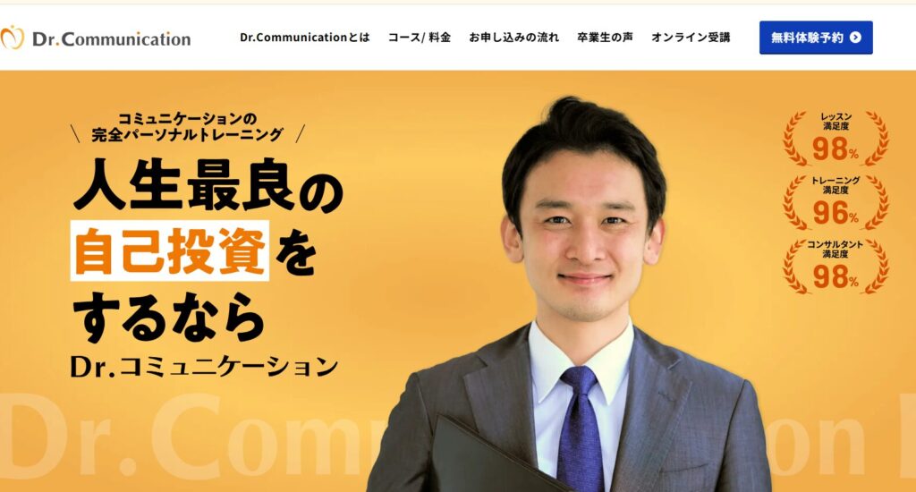 「Dr.コミュニケーション」は、コミュニケーション能力や話し方を総合的に学べるスクールです。ビジネスコミュニケーションや対人関係の改善など、社会人向けのトレーニングが充実しています。
