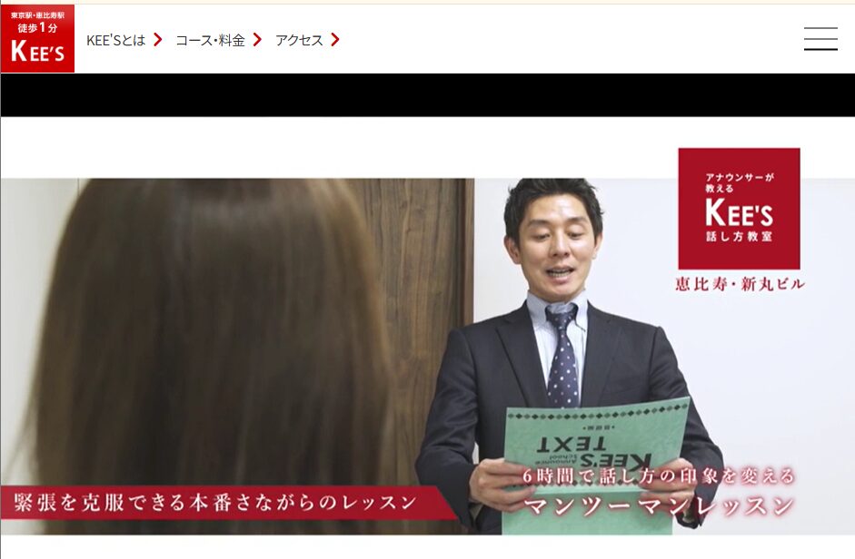 「KEE’S(キーズ)」は、アナウンサーが講師を務める話し方教室です。テレビやラジオの現場で培われたノウハウを体系化した独自メソッドをもとに、話し方をトレーニングすることができます。