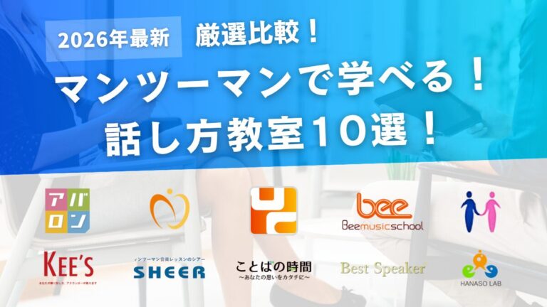この記事では、マンツーマンで学べる話し方教室のおすすめスクール9校を比較し、それぞれの特徴やレッスン内容を紹介します。社会人におすすめのスクールを中心に紹介するので、話し方を改善したい方はぜひスクール選びの参考にしてみてください。