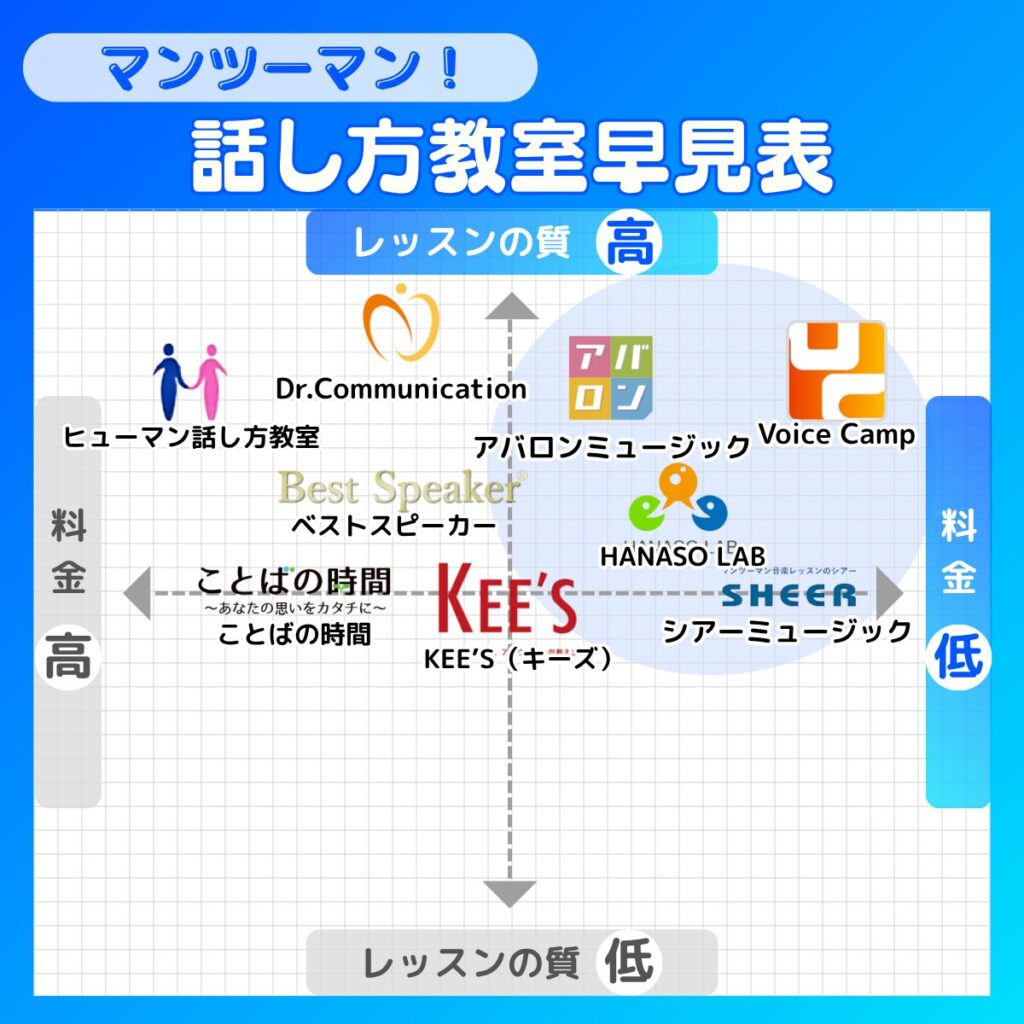 【おすすめ】マンツーマン話し方教室の早見表