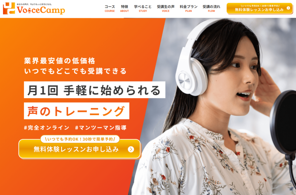 「Voice Camp」は、週1回から始められる完全オンラインの声優スクールです。スマホもしくはパソコンとインターネット環境があれば受講できて、レッスンも前日まで振替できるので忙しい社会人の方でも予定に合わせられます。