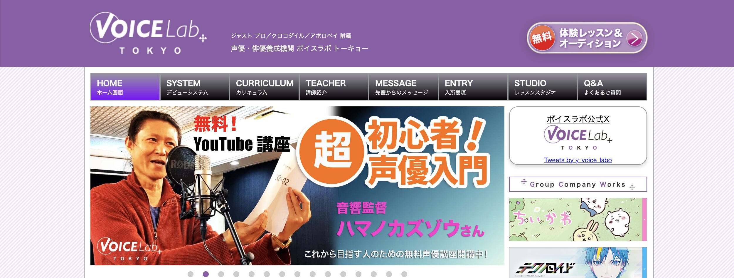 「ボイスラボ トーキョー」は、のオンラインレッスンは、自宅にいながら声優として必要な基礎スキルを学べるオンライン型のトレーニングプログラムです。声優事務所・制作会社と関係がある運営体制で、作品出演や現場につながる可能性を打ち出しています。