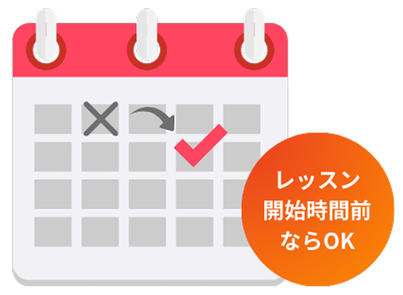 レッスン日から「最大2週間後」までのいづれかの日であれば“無料”でレッスンの振替が可能です!